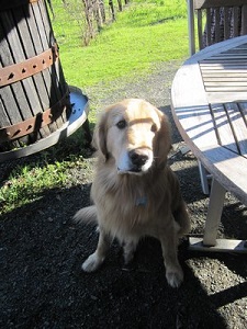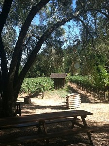 Simply put: Wow. This is what I want in a wine tasting. It’s well off the beaten path which we liked and when we pulled up the wine maker/owner, Julie, and her husband were having lunch outside which they promptly offered us and it was all delicious. Gorgeous view, they had tables set up and shade with big trees covered a perfect picnic spot. We chatted with Julie, her husband, and our guide for a good while. They have 2 gorgeous golden retrievers that were incredibly friendly, one (Moose, seen above) even has his own business card as a public relations employee which was too funny. We had a few wines, then took some back to the farm area where they had sheep, hens, and baby hens. We fed the sheep some bread, tried some Zin off the vine, checked out their garden full of fruit and veggies, as well as tons of pomegranate trees planted all over the property. We went into their wine cave and watched some workers cleaning barrels. A very intimate setting, personal tour, lots of information and good conversation. The wine was fantastic…we liked all of it. Our friends bought some Zin while we got the Rose and Por Que No….a blend of just about everything. Cab, merlot, zin, petite syrah…weird sounding but very delicious. We had packed a nice lunch and Julie was happy to let us stay and enjoy our picnic. She even brought over some chocolate to enjoy with the petite syrah. Overall this was head and shoulders our best experience in Napa and an absolute must see. We will definitely be going back next time we’re in Napa. Tres Sabores is appointment only so call ahead and bring lunch!