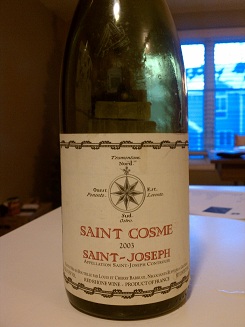 colonelgrape: 93. I really enjoyed this wine. We decanted it for about 45 minutes to let it open up and It was a nice ruby color, full bodied with flavors of red fruit and leather. Definitely not as bold as Cote-Rotie wines but you could tell it was Syrah. If you have a bottle of this drink it now, I don’t see it getting any better with more aging.